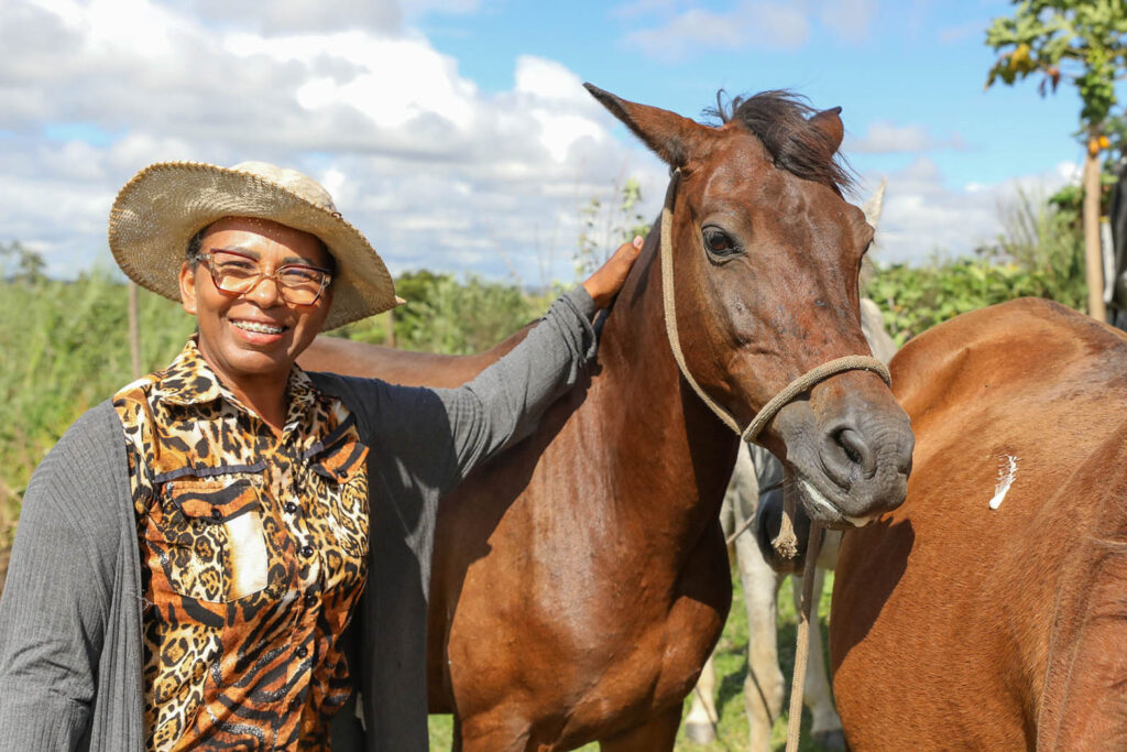 Na área rural de Samambaia, a bispa Lúcia dos Santos Costa, após o cadastro e período de espera, acolheu quatro cavalos vindos do curral da secretaria: Aurora, Melissa, Max e Caramelo | Foto: Paulo H. Carvalho/Agência Brasília