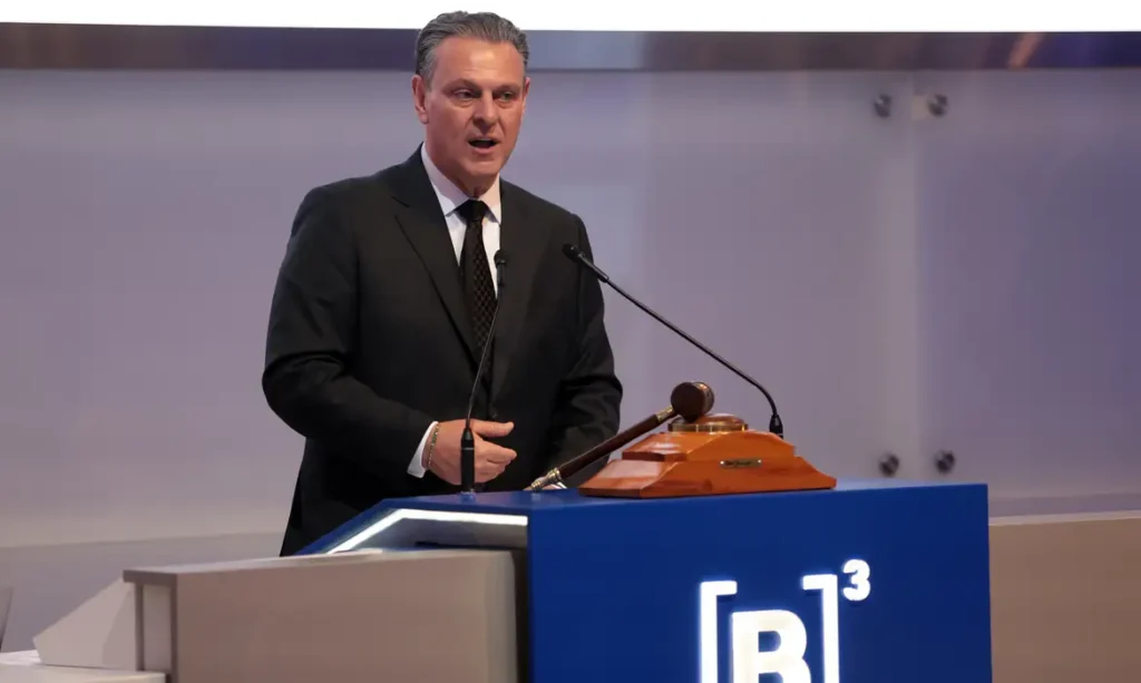 São Paulo (SP), 14/08/2025 - O ministro dos Transportes, Renan Filho, participa do Leilão da Rota Agro (BRs 060/364/GO/MT), na B3. Foto: Paulo Pinto/Agência