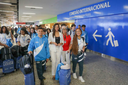 Embarque foi nesta quinta (4) e contou com a presença da primeira-dama Mayara Noronha Rocha; ao todo, 102 alunos seguem viagem e vão viver uma imersão cultural e linguística O embarque que parecia dis...