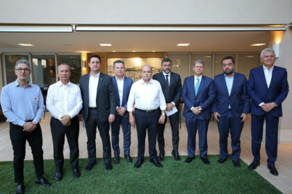 Encontro na residência do governador no Lago Sul reuniu chefes do Executivo de nove unidades da Federação para debater medidas sobre os impactos das tarifas sobre produtos brasileiros O governador Iba...