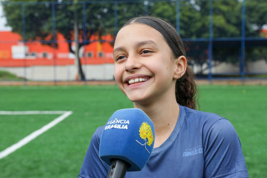 A pequena Júlia, de 10 anos, já utiliza o espaço com amigos e familiares e aprova a novidade. “Antes, eu não jogava muito bola aqui. Eu vinha mais pra andar de bicicleta, porque era só barro e nem tinha gol direito. Agora está muito melhor. Dá pra vir toda hora, é tranquilo, dá até pra jogar descalço, não machuca nada”, relata. Animada, Júlia diz que o novo campo virou ponto de encontro. “Meus amigos vêm pra cá, vem todo mundo. Tenho certeza de que todo mundo gostou”, comemora.