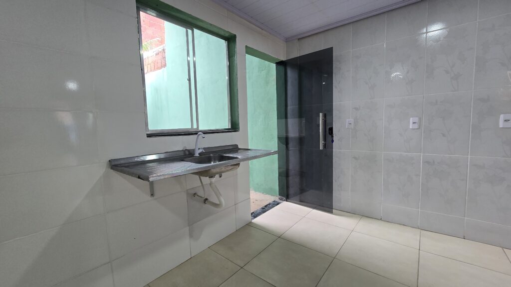 – Reforma completa do banheiro, com ampliação do espaço, instalação de novo piso e revestimento cerâmico, relocação dos aparelhos sanitários e criação de um box para chuveiro, proporcionando mais higiene e acessibilidade;