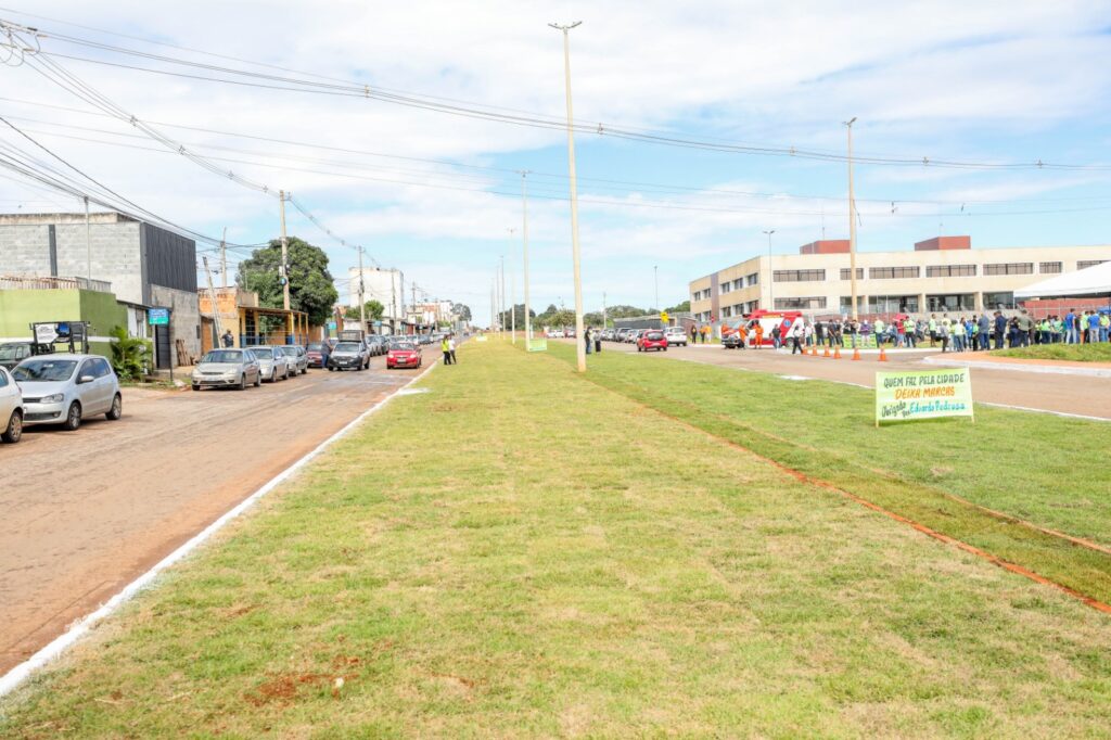 “Essa obra tem uma função estratégica. A Avenida Brasil deslocou o centro da cidade para nós, passou a ser a avenida mais importante da nossa cidade. Então, aqui começou a construção desse fórum, tivemos essa praça, abrimos a rede de drenagem. Essas quadras não tinham infraestrutura nenhuma. Foi feita drenagem, asfalto, calçada e meio-fio. São 18 quadras aqui, além das quadras da Avenida Brasil. Isso deu dignidade a esses moradores”, comemora o diretor-presidente da Novacap, Fernando Leite.