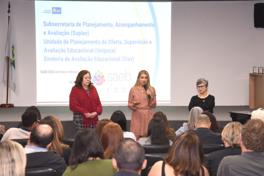 A Secretaria de Educação do Distrito Federal (SEEDF) reuniu, na terça-feira (12), gestores e coordenadores das 14 coordenações regionais de ensino (CREs) para apresentar as novidades do Sistema de Avaliação da Educação Básica (Saeb) 2025. O encontro ocorreu no auditório Neusa França, na sede da SEEDF.