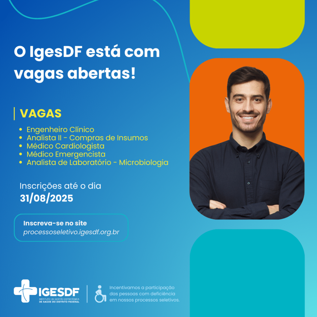A semana começou com boas notícias para quem busca colocação na área de saúde no Distrito Federal. O Instituto de Gestão Estratégica de Saúde do DF (Iges-DF) abriu, nesta segunda-feira (25), novos processos seletivos para compor o cadastro reserva de profissionais que poderão atuar no Hospital de Base (HBDF), Hospital Regional de Santa Maria (HRSM), Hospital Cidade do Sol (HSol) e as 13 Unidades de Pronto Atendimento (UPAs).
