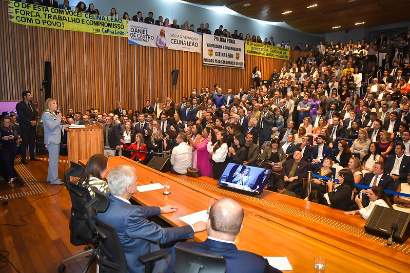 A Câmara Legislativa do Distrito Federal (CLDF) promoveu, nesta segunda-feira (30), a sessão solene que oficializa a transmissão de cargo do Governo do Distrito Federal, com a posse da vice-governadora Celina Leão no comando do Executivo local até 6 de janeiro de 2027. A cerimônia ocorre após a renúncia de Ibaneis Rocha, formalizada no último sábado (28).